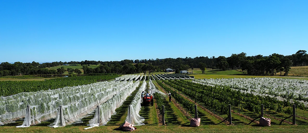 Water management is an important issue in this dry, granite country. Shallow spoon drains curl around the vineyard, taking precious rainwater run-off directly into ‘Lake Savina’ (our large dam). The vineyard is trickle-irrigated to provide just enough moisture to encourage the vines to put down deep roots. A little struggle helps intensify fruit flavours. Water use is monitored constantly with the latest technology moisture probe and weather station.